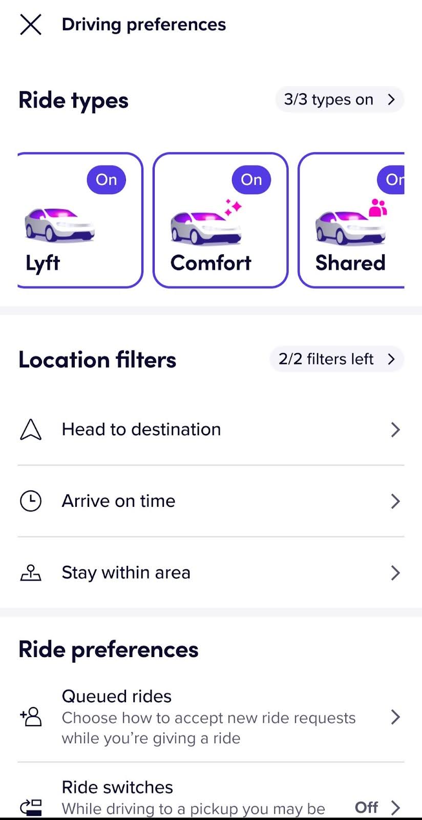 Now, a dedicated “Ride Types” menu allows drivers to toggle specific categories such as Extra Comfort, XL, and Black on or off at any time.